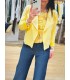 Chaqueta de efecto ante, abierta, cuello solapa. Manga larga. Corte recto, entallado. Detalle cremalleras de adorno ya que no tiene bolsillos.