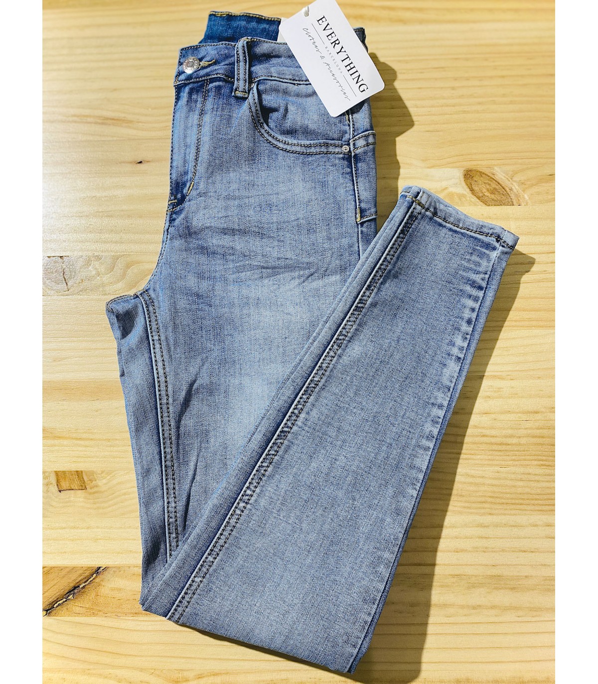 Pantalón tejano pitillo, ajustado, tejido elástico, tiro alto, cierre mediante botón y cremallera. Con 5 bolsillos.