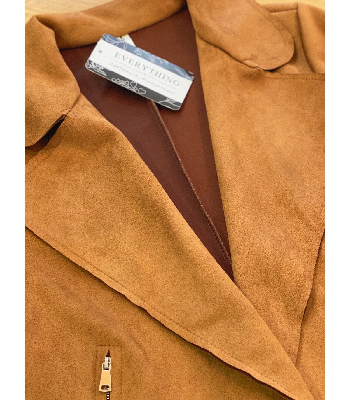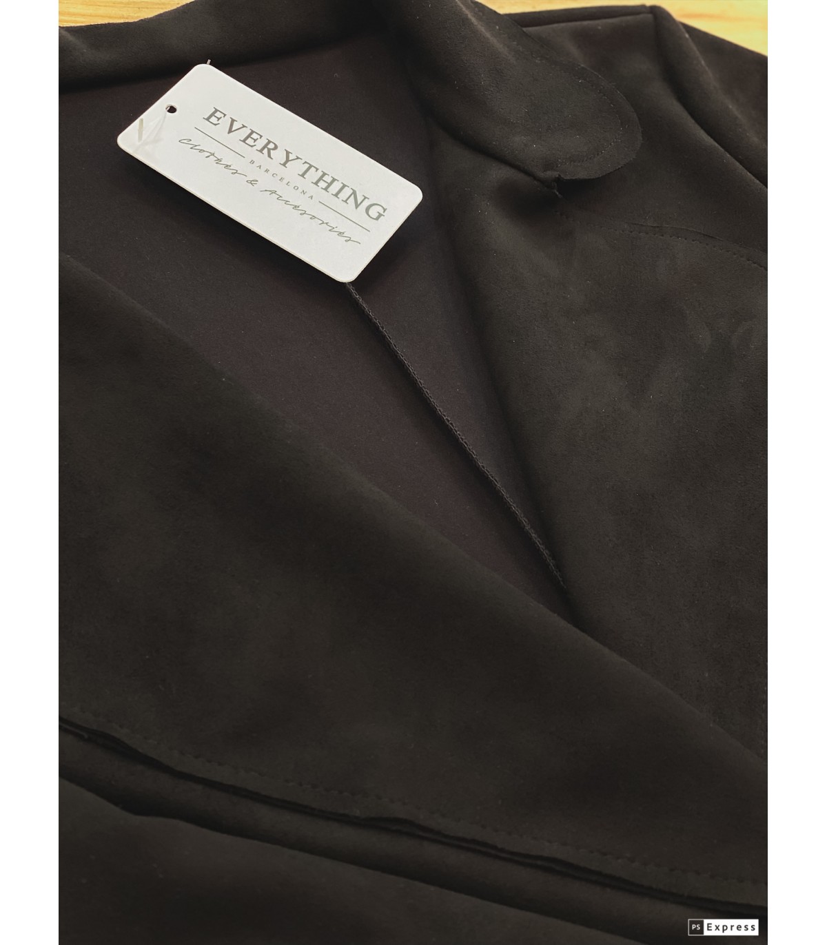 Double-breasted jacket, lapel collar, open, light, without inner lining, long sleeves, fake side pockets with zipper.